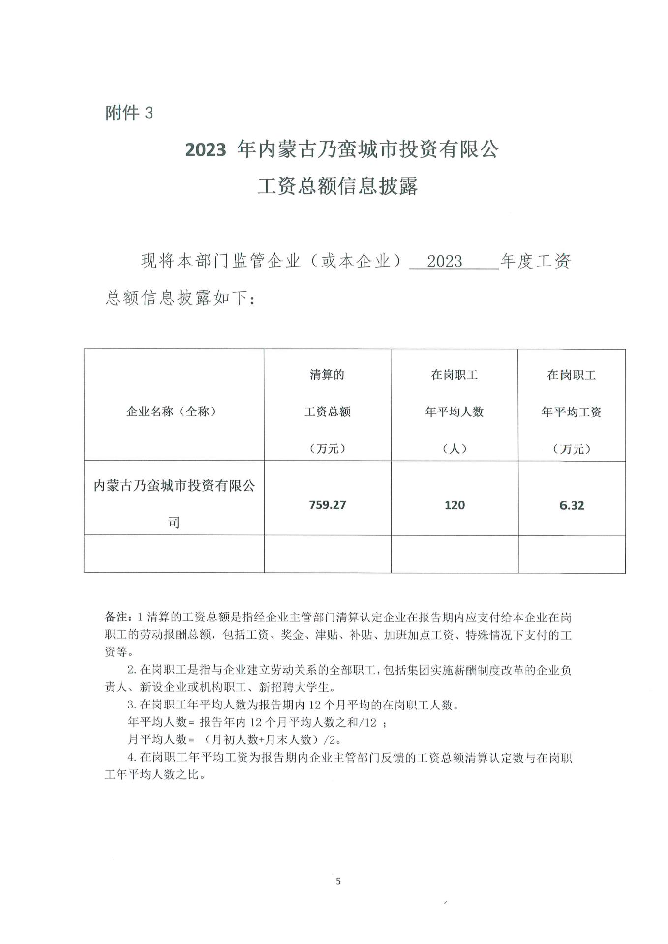 2023年內(nèi)蒙古乃蠻城市投資有限公司工資總額信息披露